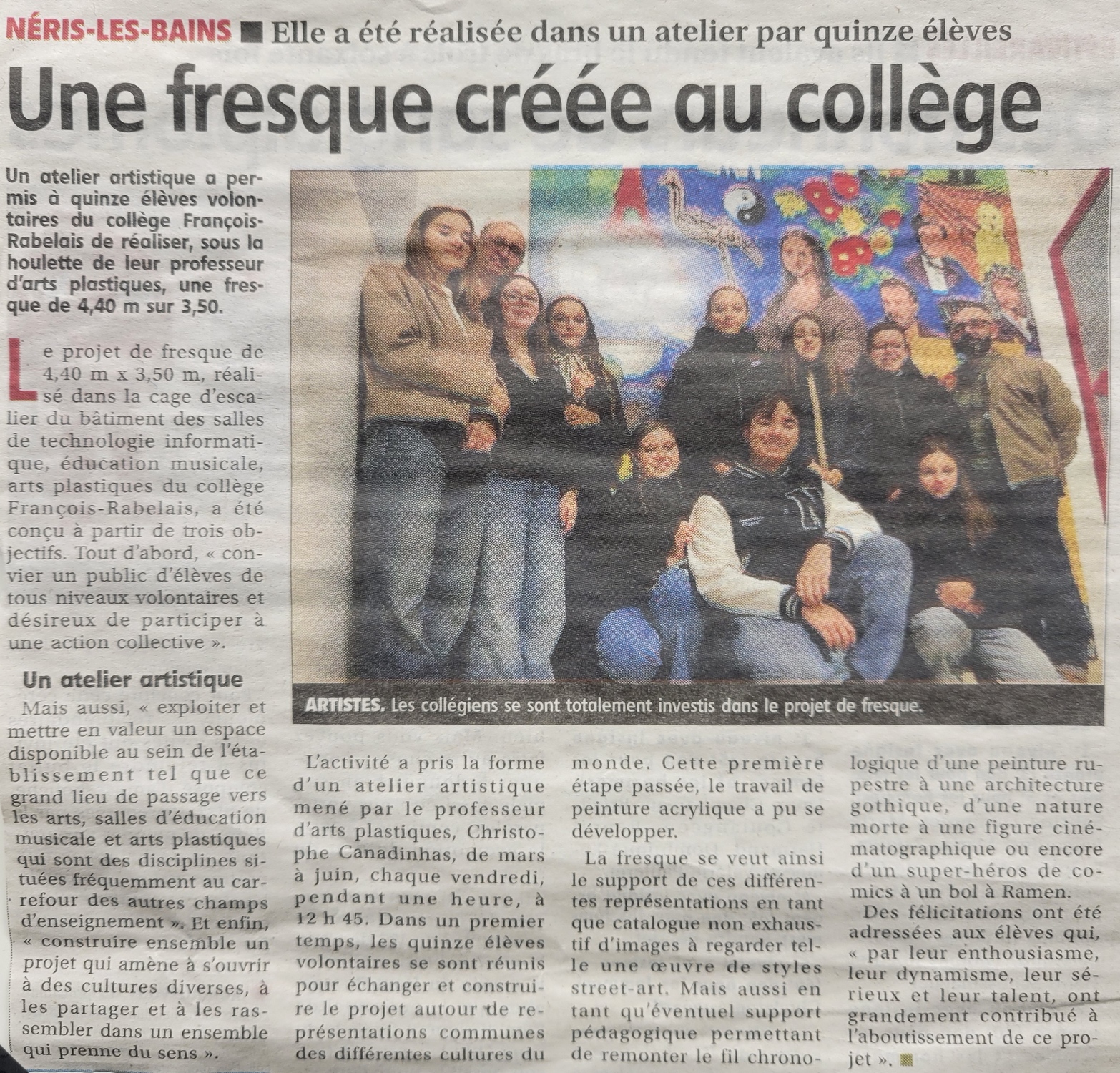 Vendredi 14 novembre, la fresque du bâtiment Perm-Techno-Musique-Arts Plastiques a été inaugurée en présence des élèves ayant participé à sa réalisation, y compris les anciens, venus le même jour pour la cérémonie de remise des diplômes du DNB.