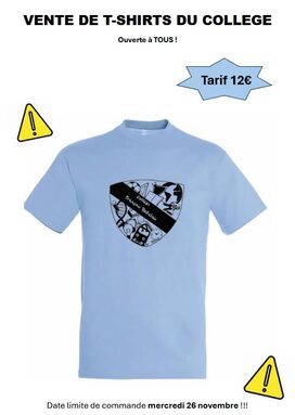 La date limite de commande est fixée au mercredi 26 novembre (pour une réception des t-shirts avant les vacances de Noël )!
